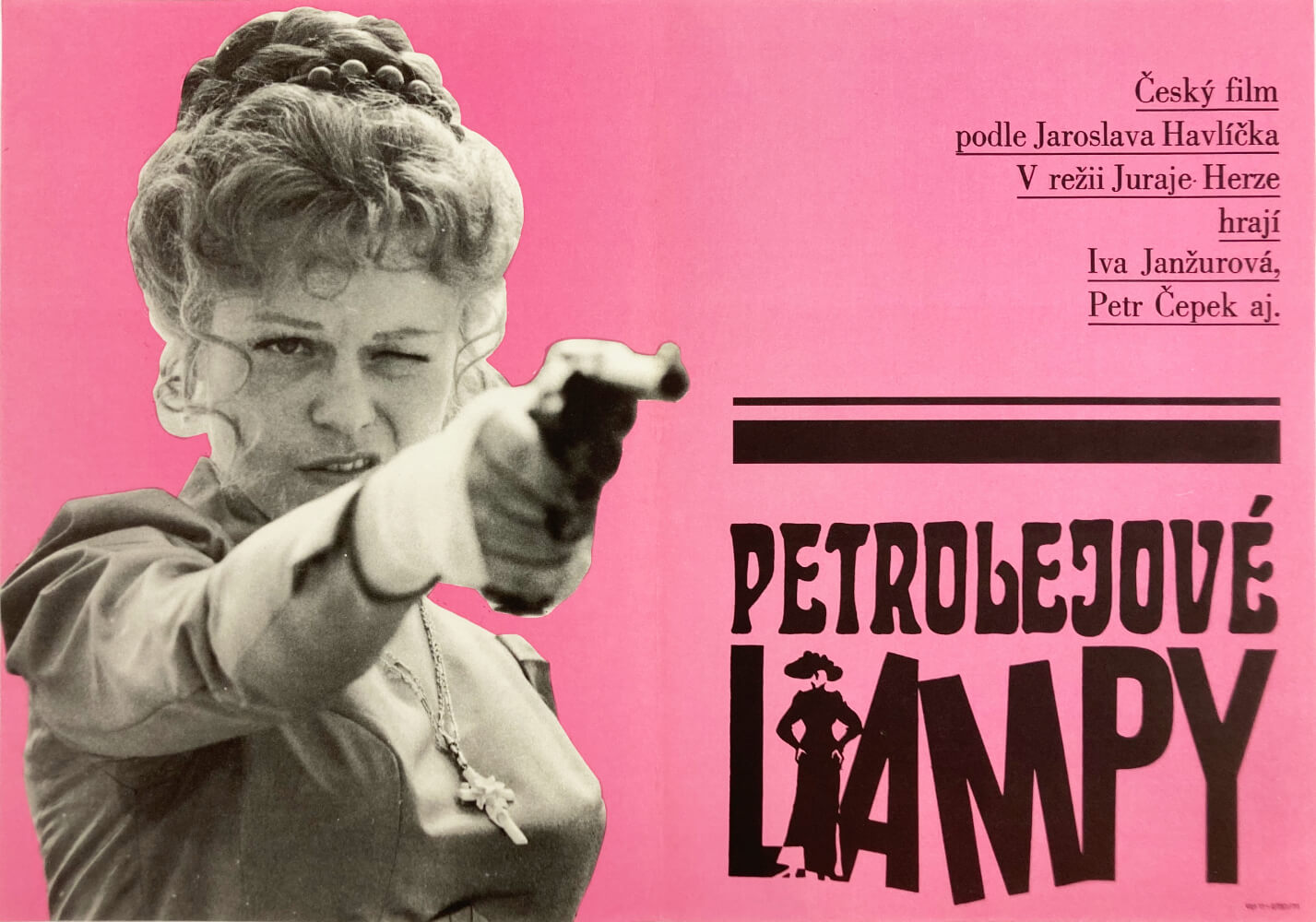 Vintage poster for Czechoslovakian film Oil Lamps (Petrolejové lampy) directed by Juraj Herz