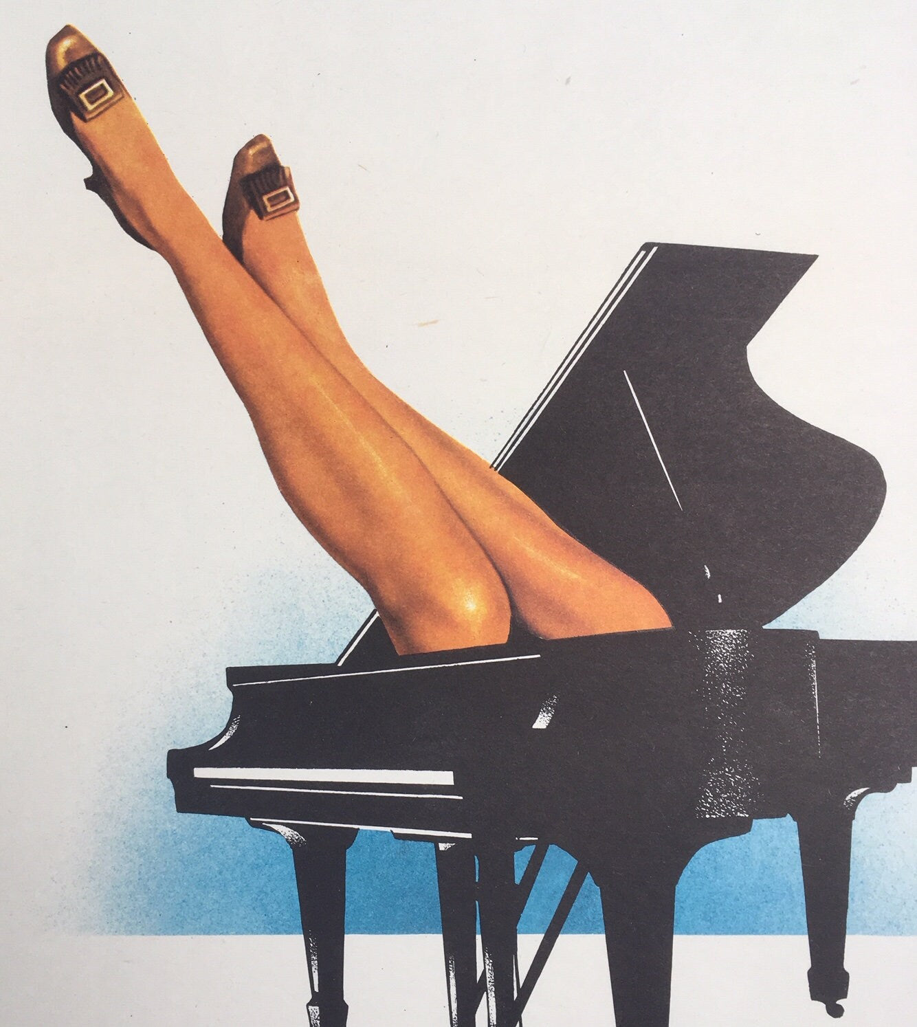 Vintage Cinema Poster for mysterious crime story/comedy cool art of sexy legs sticking out of piano
