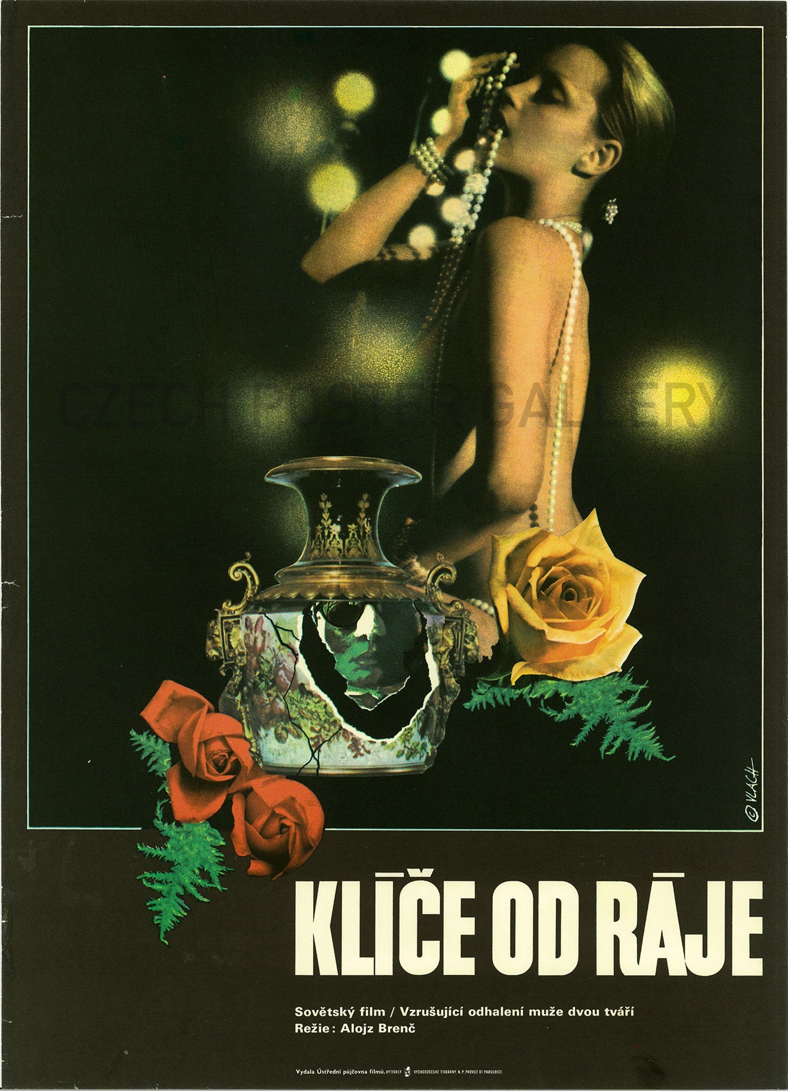 Stunning image of lady, pearls and roses. Original Czech cinema poster form 70's.